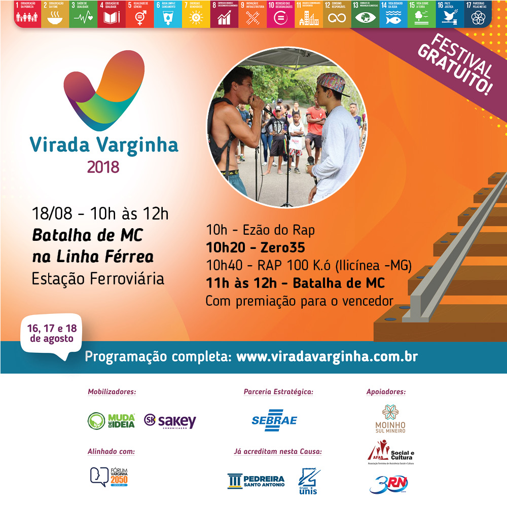 Hip-Hop e duelo de MC: uma mistura perfeita para transformar a Estação Ferroviária no reduto da cultura de rua varginhense. Produzido pela Vai que Vai Eventos, o festival reunirá MCs de Varginha e região. O vencedor gravará sua faixa em um estúdio profissional. Abertura com Ezão do Rap (Varginha-MG), Zero35 (Varginha-MG) e RAP 100 K.ô (Ilicínea-MG).